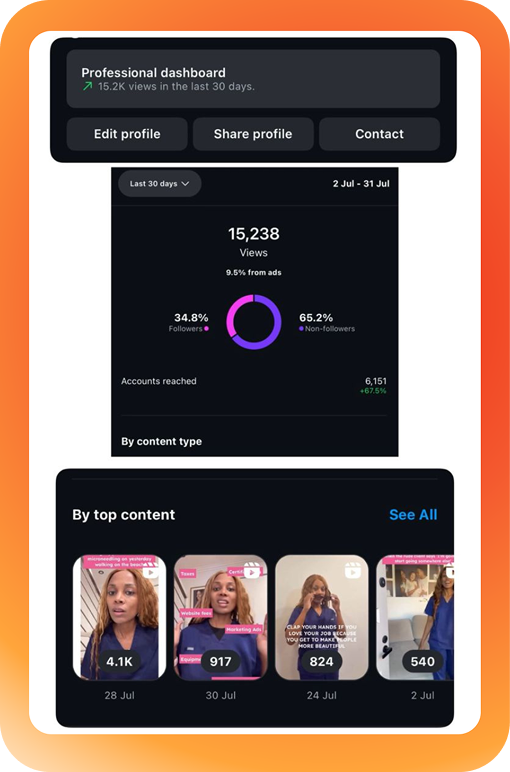 Next, we took over their Instagram and Facebook management, creating cohesive, high-quality content that matched Bea’s brand tone and highlighted real client transformations.